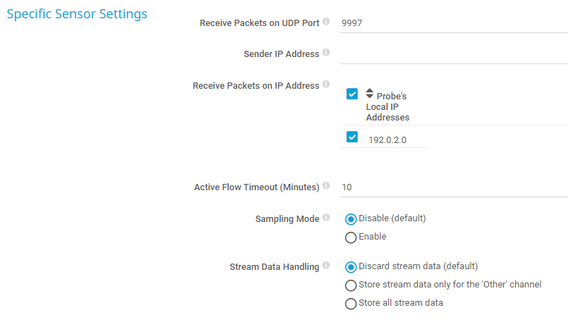 This sensor requires that the IPFIX export is enabled on the target system. The target system must send the flow data stream to the IP address of the probe system.